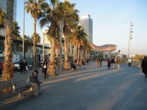 Situé au centre de la grande ville de Barcelone, le quartier de Barceloneta est niché sur une petite presqu’île près du port olympique. La cité est née vers les années 1753 à l’époque de la création du Parc de la Ciutadella, et depuis, les marins et pêcheurs y élisent domicile. C’est en 1992, à l’occasion des Jeux Olympiques, que cette petite ville refait peau neuve à travers une réhabilitation massive, provoquant des bouleversements urbanistiques d’une grande réussite. Un quartier flambant neuf, le village olympique, fait place aux anciens terrains industriels. Vous apprécierez ainsi les promenades au cœur des innombrables petites ruelles perpendiculaires, ou déambuler le long du Passeig de Joan de Borbo, près du Maremagnum. A quelques pas de là commence la promenade maritime, en partant de la plage de la Sant Sebastià, en longeant les zones piétonnières bordées de grands palmiers. Cet itinéraire permet de rejoindre le grand port olympique depuis le quartier historique de Barceloneta.