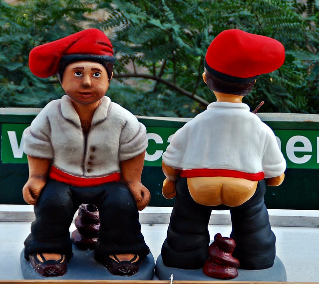 Si vous regardez la crèche catalane, vous allez avoir le choc de votre vie en voyant dans un coin d’un appartement à Barcelone, une figurine du caganer, qui fait joyeusement ses besoins.