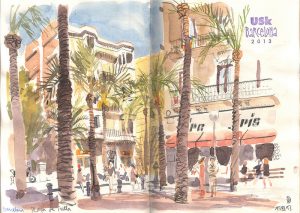 Certains amoureux de leur ville natale, la Barcelone flamboyante, captent son atmosphère particulière à travers des croquis particulièrement réussis. Leur sensibilité nous touche et nous pousse à partir à la découverte d’une Barcelone à apprivoiser. Car là est bien le secret des très beaux croquis noirs et blancs et parfois rehaussés à l’aquarelle de Joaquim Francés, l’illustrateur reconnu qui a su conquérir et s’approprier la ville pour la retranscrire à sa manière mais avec justesse. Javier Mariscal, designer et illustrateur au style plus coloré, nous surprend par son regard sur Barcelone à travers des couleurs réelles très vives qui rappellent la lumière propre à cette ville méditerranéenne. Cristina Curto, quant à elle, dessine avec grâce des moments volés aux barcelonais. Elle a illustré divers guides sur Barcelone comme celui sur la Rambla, très coloré, dans lequel des plans se télescopent à l’image de l’ambiance cosmopolite de ce quartier.