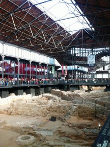 Le marché du Born avait été construit par l’architecte Josep Fontseré i Mestre de 1874 à 1876. Simple marché de quartier au départ, le marché du Born est devenu en 1921 un marché central pour les fruits et les légumes. En 1971, le marché ferme et on décide d’en faire un espace public qui accueillerait des événements et festivités. En 2002, des travaux de rénovation sont entamés pour transformer le lieu en bibliothèque. Lors de ces travaux, on découvre des ruines archéologiques sous les constructions. C’est pour cette raison que les travaux furent interrompus et que l’ancien marché devint le centre culturel que l’on connaît actuellement. Les ruines situées sous l’ancien marché sont incroyablement bien conservées, à tel point qu’elles représentent un véritable témoignage de la façon dont vivaient les barcelonais au XVIIè et au XVIIIè siècle. Grâce aux documents historiques déjà existants, il a même été possible de retrouver certains des noms des familles qui vivaient ici avant la Guerre de Succession, époque où le quartier a été en partie détruit, laissant seulement les ruines que l’on peut apercevoir aujourd’hui. En plus d’être un témoignage important et privilégié du passé, ces gisements constituent également une source archéologique de taille. Ainsi de nombreuses céramiques ont été retrouvées par les archéologues.