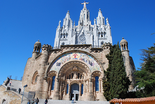 La colline du Tibidabo domine fièrement Barcelone, réhaussée d’une somptueuse église blanche. Il s’agit en fait du temple expiatoire du Sacré-Coeur (templo expiatorio del Sagrado Corazón), édifié durant la première moitié du vingtième siècle par Enric Sagnier i Villavecchia puis son fils. C’est le troisième édifice de ce type avec le Sacré-Coeur de Paris, qui domine lui aussi la ville depuis Montmartre, et le Sacré-Coeur de Rome. Si l’extérieur est impressionnant, l’intérieur est tout aussi splendide. On peut d’ailleurs visiter sa crypte, et prendre un ascenseur pour se hisser tout en haut de l’édifice et profiter de magnifiques vues sur Barcelone.