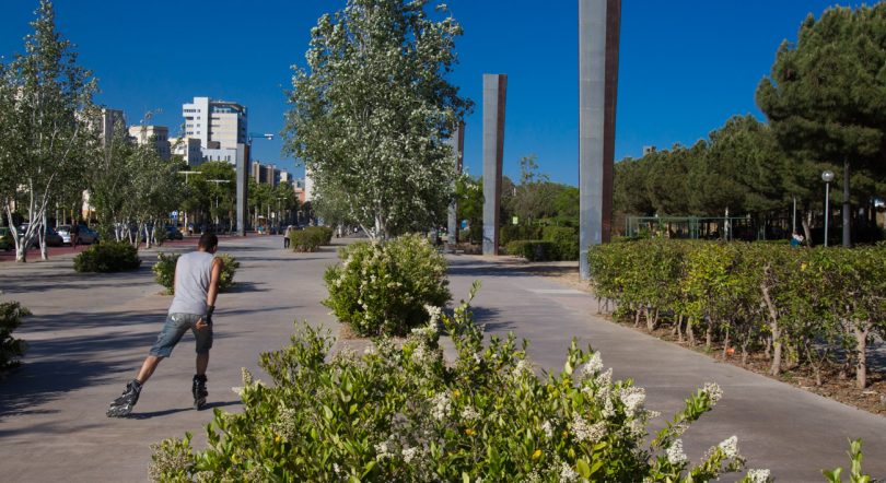 Le Parc du Centre du Poblenou est un espace relativement récent (inauguré en 2008) qui vaut le détour pour son originalité. Il a été dessiné par Jean Nouvel (architecte français également à l’origine de la Torre Agbar) et est composé de plusieurs espaces uniques, donc le plus connu est un chemin en forme de spirale bordé de bougainvilliers.