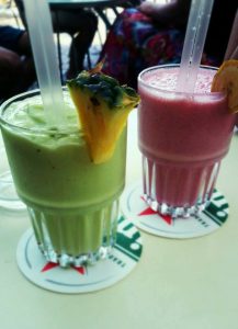 Si vous aimez les smoothies, leurs recettes sont toutes plus succulentes les unes que les autres. Ils en proposent au lait d’amande et sucre, avec des combos exotiques tels que mangues, poire et menthe, pomme, mangue et papaye, ou encore fraise, mangue et poire, pour n’en citer que quelques-uns.
