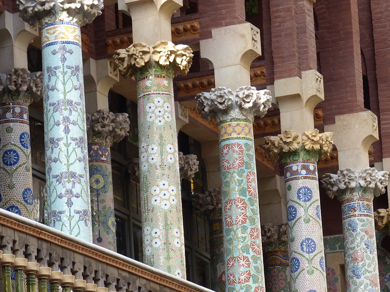 Enfin, le Palau de la Música Catalana, situé dans le quartier Born, est un autre exemple impressionnant des plus belles mosaïques de Barcelone. Conçu par l’architecte Lluís Domènech i Montaner dans le style moderniste catalan, le bâtiment est rempli de détails incroyablement complexes, à l’intérieur comme à l’extérieur. Les plus belles mosaïques de l’édifice sont visibles lors de la visite guidée du bâtiment qui conduit les visiteurs jusqu’au balcon du premier étage, qui pourrait bien être le plus beau balcon de toute Barcelone. Avec ses colonnes colorées, ses mosaïques et sa vue pittoresque sur la rue en contrebas, le balcon est un incontournable pour les amoureux de la mosaïque à Barcelone.