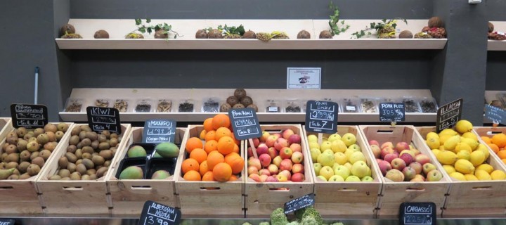 Trouvez ici des barres avec des noix non salées enrobées en chocolat bio, fabriqué à partir de fèves de cacao du commerce équitable – des pâtes de blé entier, des thés en vrac, des cafés biologiques de la Colombie et de l’Amérique du Sud – des substituts du lait tels que le lait de riz, lait de soja, lait d’épeautre et bien d’autres variétés – beaucoup de produits de remplacement de la viande comme le tofu et les saucisses de tofu, seitan et Tempah – des jus de fruits en bouteille et des jus de légumes, et beaucoup d’ingrédients pour la cuisine orientale tels que le tamari, la sauce soja, les algues et le miso.