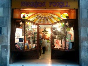 La pharmacie Padrell est située dans le quartier du Born. C’est la plus ancienne de Barcelone : fondée en 1561, elle a aussi conservé les vitraux de style moderniste datant de 1894. Les fenêtres sont ovales, avec un panneau central et deux panneaux latéraux représentant des fleurs typiques du mouvement moderniste : pavot et lys. On aperçoit également Narcisse, le dieu grec tombé amoureux de son propre reflet. A l’intérieur, ce sont des meubles de style baroque et une lampe en fer forgé.