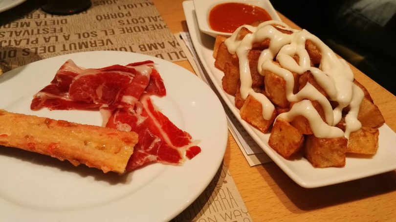 cervezaSitué dans le quartier de l’Eixample, nous avons l’impression que ce restaurant est toujours plein, peu importe l’heure à laquelle vous y allez. En effet, afin d’éviter un peu l’afflux des clients, nous avons essayé d’y aller vers 19h30, ce qui est très tôt pour les espagnols. Résultat : même à cette heure-ci, le restaurant était bondé et il était très difficile d’y entrer. Quand nous avons enfin atteint la responsable, on nous a annoncé une heure d’attente… les tapas, ça se mérite ! Réputé pour être de qualité à un petit prix, ce restaurant est connu au sein de toute la capitale catalane.