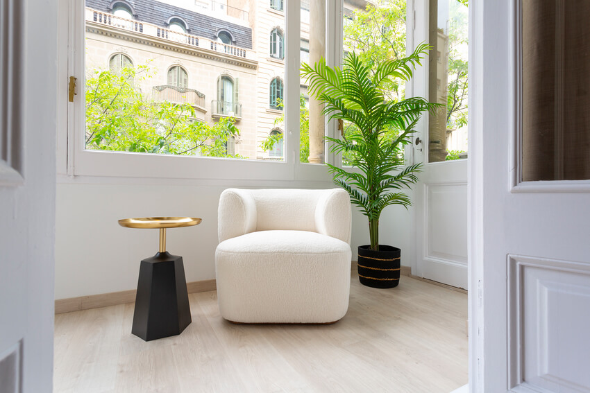 Dans tous les cas, il est toujours important de crĂ©er un Ă©quilibre entre les diffĂ©rents Ă©lĂ©ments d’une pièce, tant en termes de style que de taille. Si, par exemple, les fauteuils sont l’Ă©lĂ©ment principale de la pièce, il est inutile d’y ajouter un autre meuble ayant une forte prĂ©sence ou d’une grande ampleur.