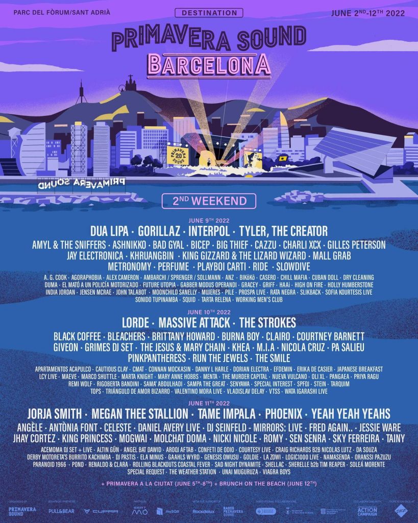Dua Lipa, Gorillaz, Interpol, Tyler, The Creator, Lorde, Massive Attack, The Strokes, Jorja Smith, Megan Thee Stallion, Tame Impala, Phoenix et Yeah Yeah Yeahs.
