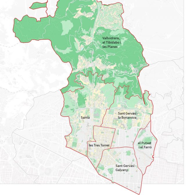 Vallvidrera, El Tibidabo et Les Planes est le regroupement de trois zones urbaines et résidentielles situées dans le massif de Collserola, la chaîne de montagnes de la côte catalane. Il est donc totalement séparé de la plaine et du territoire urbanisé de Barcelone.