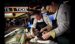 Le quartier où se situe le fameux Tickets n’a pas été choisi au hasard. C’est le quartier des théâtres et des cabarets de Barcelone ; vous ne serez donc pas surpris de retrouver au sein de ce restaurant toute une ambiance de music-hall et des arts de la scène. L’établissement propose plusieurs ambiances, ils ont créé des espaces comme le Presumida, qui reflète un caractère méditerranéen, le bar Estrella où la bière du même nom vous sera servie à température optimale, la zone des Marx Brothers l’espace des gangsters, le bar futuriste Nostromo où Xuxis qui invite à la découverte de créativités gastronomiques comme avec l’oursin à l’avocat et sa gelée de menthe, puis le Garatge à l’ambiance industrielle portuaire dédié à l’univers de la plancha et des crustacés et enfin la Dolça, la zone de toutes les tentations sucrées des fins de repas (pour les plus résistants).