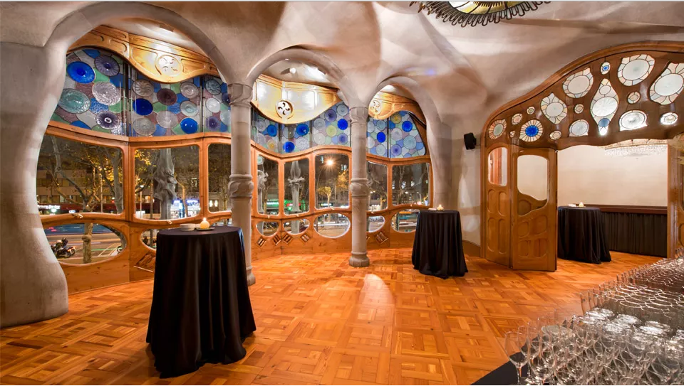 Pour impressionner vos clients, rien de tel qu’organiser votre réception dans l’un des bâtiments incontournables de Barcelone ! Il est possible de louer des salles de réception à l’intérieur ou sur le toit de la Casa Batlló. La « planta noble » peut accueillir jusqu’à 300 personnes pour un cocktail à l’intérieur de sa salle de réception au design unique signé Gaudí.