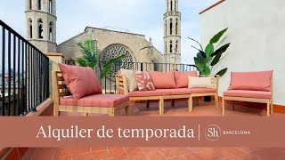 ShBarcelona presenta este inmueble totalmente amueblado y equipado en pleno centro de Barcelona. Dispone de 60 m² distribuidos en 1 habitación doble, 1 baño completo con ducha, cocina americana y una magnífica terraza. Asimismo, cuenta con conexión a internet mediante fibra, lavadora y otros servicios adicionales.