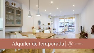 ShBarcelona vous présente ce magnifique appartement entièrement meublé et équipé dans un immeuble avec ascenseur. Il dispose de 112 m² avec 2 chambres doubles , 2 salles de bain complètes avec douche , cuisine ouverte, bureau, galerie et terrasse. Il dispose également de la climatisation de type split et du chauffage par radiateurs à gaz, ainsi que d'Internet par fibre optique, d'un lave-vaisselle et d'un lave-linge, entre autres services.