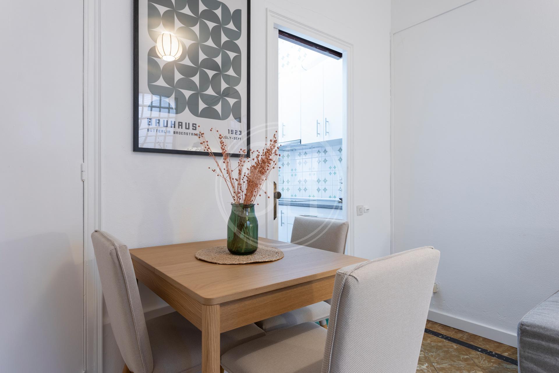 ShBarcelona vous présente ce charmant appartement entièrement meublé et équipé , situé au cœur du quartier de l'Eixample. D'une superficie de 45 m² , il comprend deux chambres avec lits doubles, une salle de bain complète avec douche, une cuisine indépendante entièrement équipée, un agréable séjour/salle à manger et une magnifique terrasse meublée .